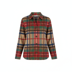 Die Lina Bluse vereint eine lebendige Farbpalette mit Rot, Grün, Beige und Blau. Das Karomuster sorgt für einen klassischen Look, der gleichzeitig modern wirkt. Die Knopfleiste und der gepflegte Kragen machen dieses Modell vielseitig und einfach zu kombinieren.