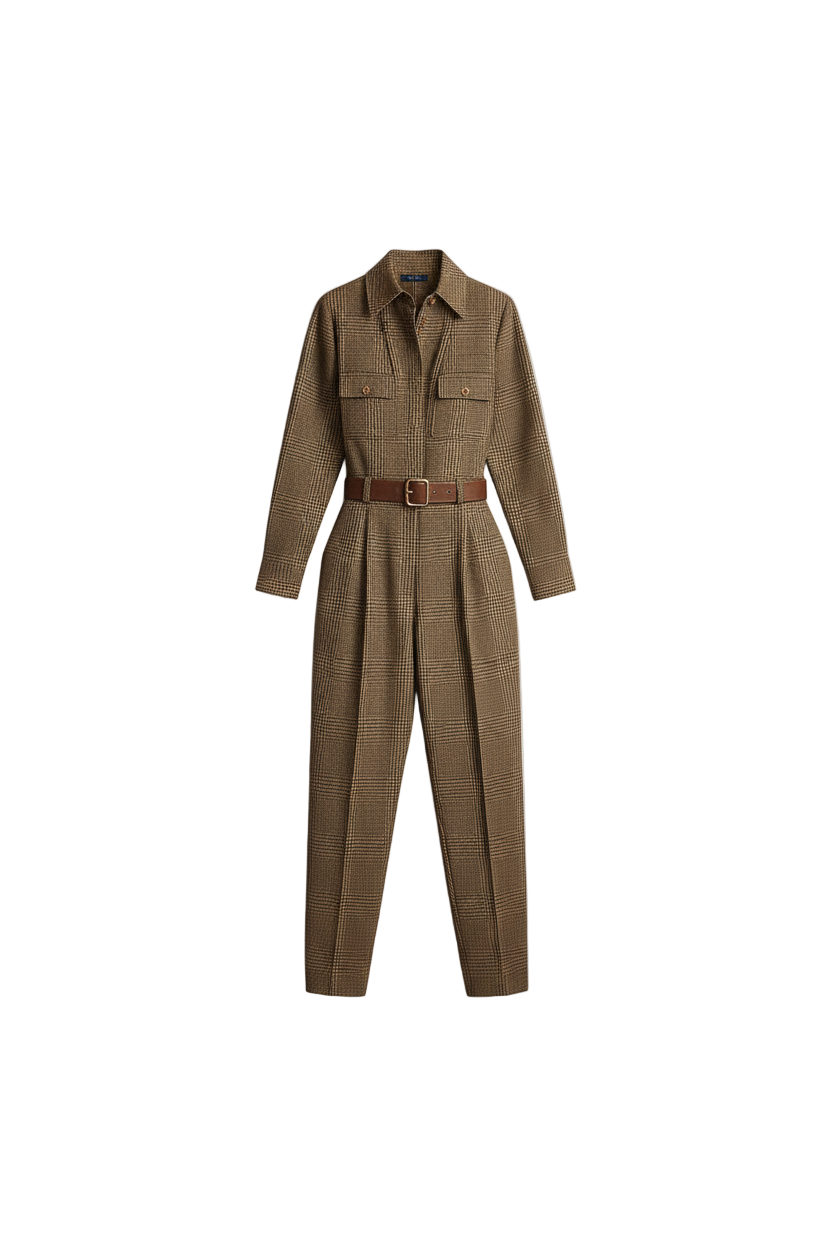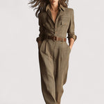 Ailina™ | Brown, elegant tweed texture check utility jumpsuit