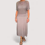 • Besondere Materialkombination: Genießen Sie das raffinierte Zusammenspiel aus strukturiertem Oberteil und fließendem Rock.