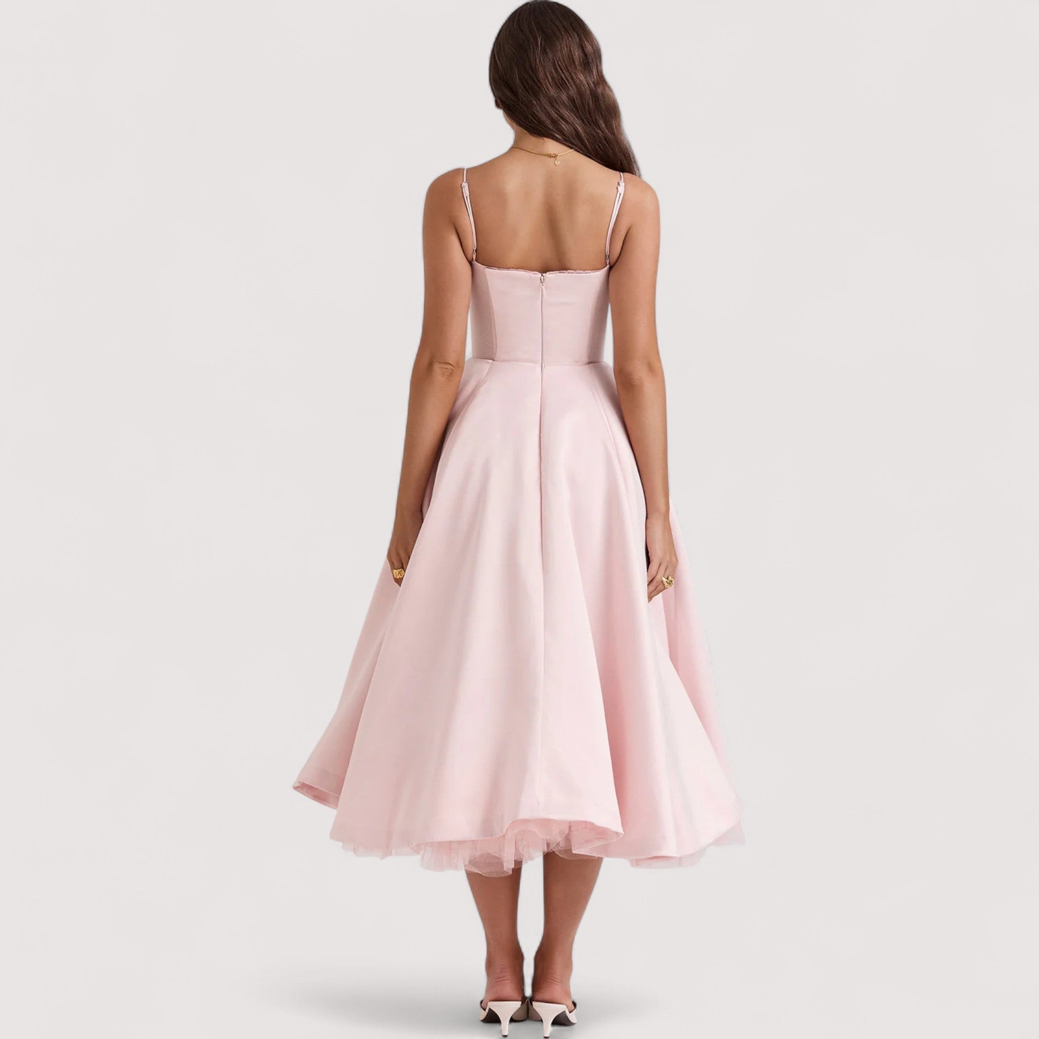 Erleben Sie mühelose Eleganz mit einem Kleid, das zeitlosen Charme und anmutige Bewegung vereint. Perfekt für Hochzeiten, Gartenpartys oder jede andere elegante Sommerveranstaltung.