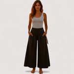 • Schmeichelhafte Passform: Hohe Taille und weite Beine für einen selbstbewussten und gestreckten Look.
