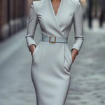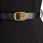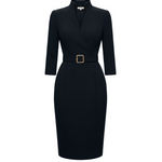 Nora | Refined Black Dress with Belt and Mandarin Collar