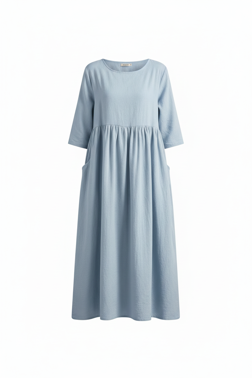 Erleben Sie ein Gefühl von Freiheit und Leichtigkeit mit diesem schmeichelhaften Kleid. Der weiche A-Linien-Schnitt umspielt sanft die Figur und sorgt den ganzen Tag für Komfort – ideal für entspannte Momente und kleine Erledigungen.